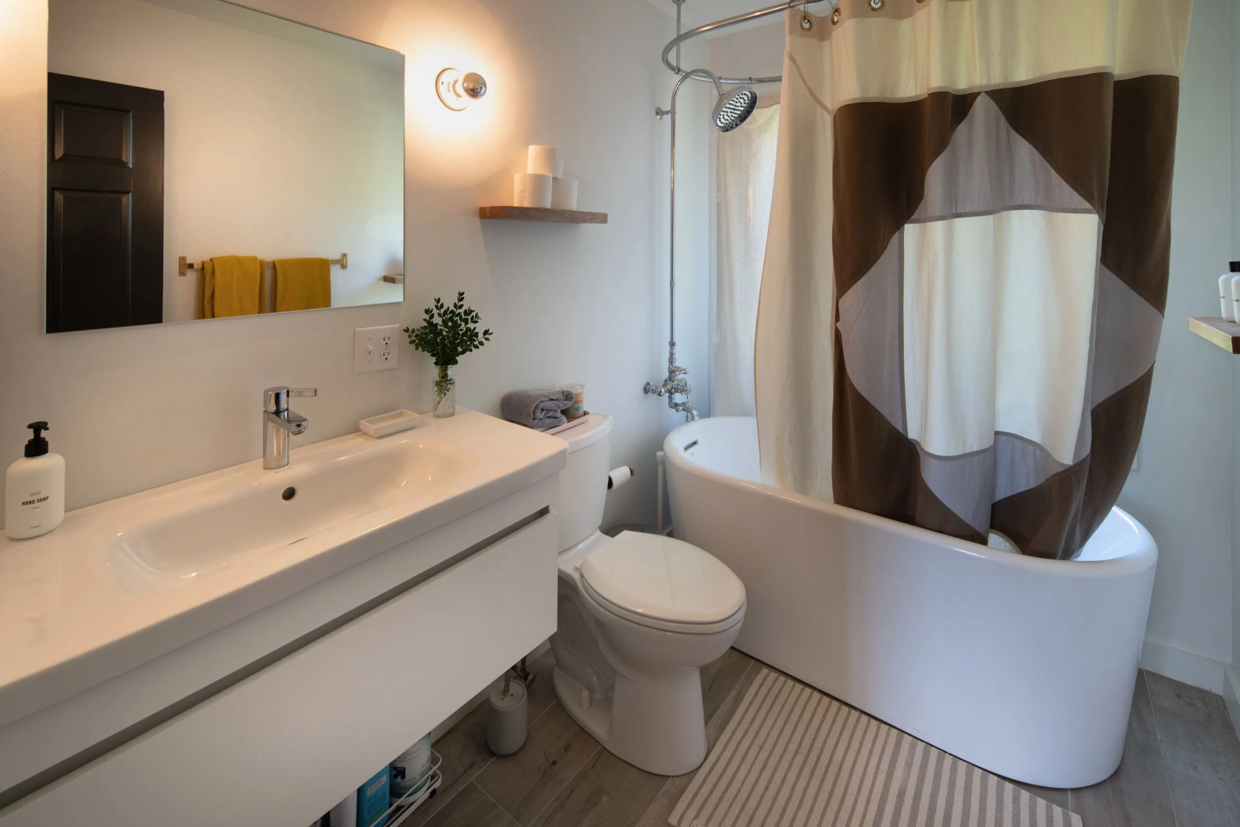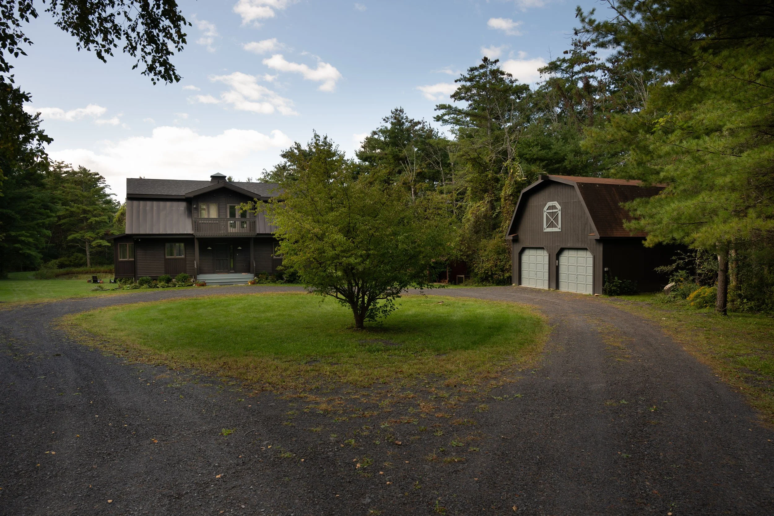 The Black Diamond, as named on Airbnb, is a stunning, recently renovated contemporary home, set back from the road on a quiet street in Greenville. A half hour from the ski slopes of Wyndham and the shops/fine dining of Hudson, this gem is truly in a prime location, offering easy access to the best of the Hudson Valley & Catskills! The main level of the home features a spacious living/dining room with a fireplace and a light-filled, gourmet kitchen with stainless steel appliances, breakfast nook, and a half bath. There's great flow around the central staircase and easy access through the kitchen and living room to the deck. The upper level features the primary suite with vaulted ceilings, a walk-in closet, large shower, and double vanities. The other two bedrooms, also with vaulted ceilings, and the second bathroom, which has a large soaking tub, are located on this level. In addition, there are two balconies, one overlooking the pond, lawn, and woods and the other with a view of majestic trees and the grand circle drive. The finished basement features a family room, an office, a half bathroom, and a laundry room and easy access to the back patio. Many places to relax and unwind, entertain, work from home, and accommodate family and friends. In addition to the main home, there's a shed and a two-car garage with electricity. Stairs in the garage lead to a loft space that could be finished as a workshop, art studio, additional storage space, etc. With many recent updates (see list of improvements) including a new roof, all new appliances, mini-splits, a water filtration system, and boiler this home is ready to go and easy to maintain. Plenty of room on this five-acre parcel to add a pool, vegetable garden, bocce, play-set, or leave as is with its expansive lawn and pond that attracts wildlife. 5 minutes to the supermarket, a golf course, Woodhouse Pizza and Greenville Town park with trails. 10 minutes to the Greenville Drive Drive-in Movie Theater. 30 minutes to Hudson, Windham, Catskill, Coxsackie. 35 minutes to Albany.