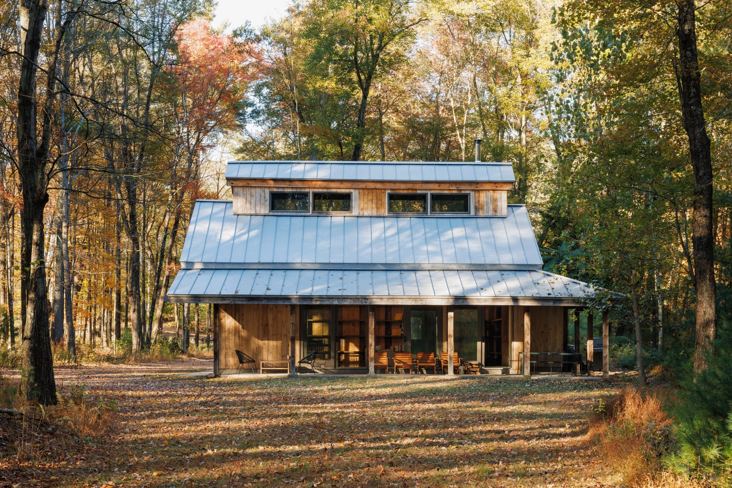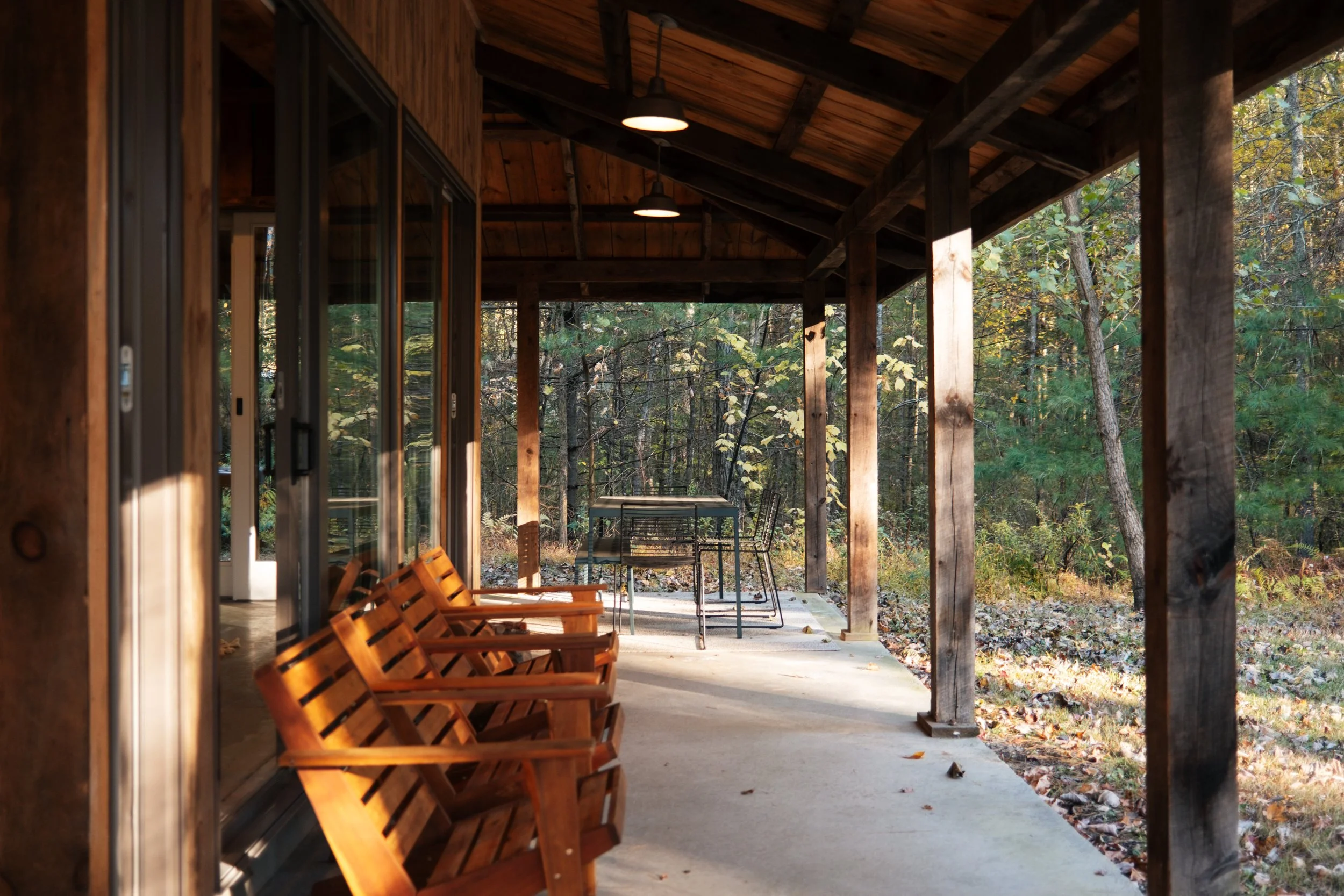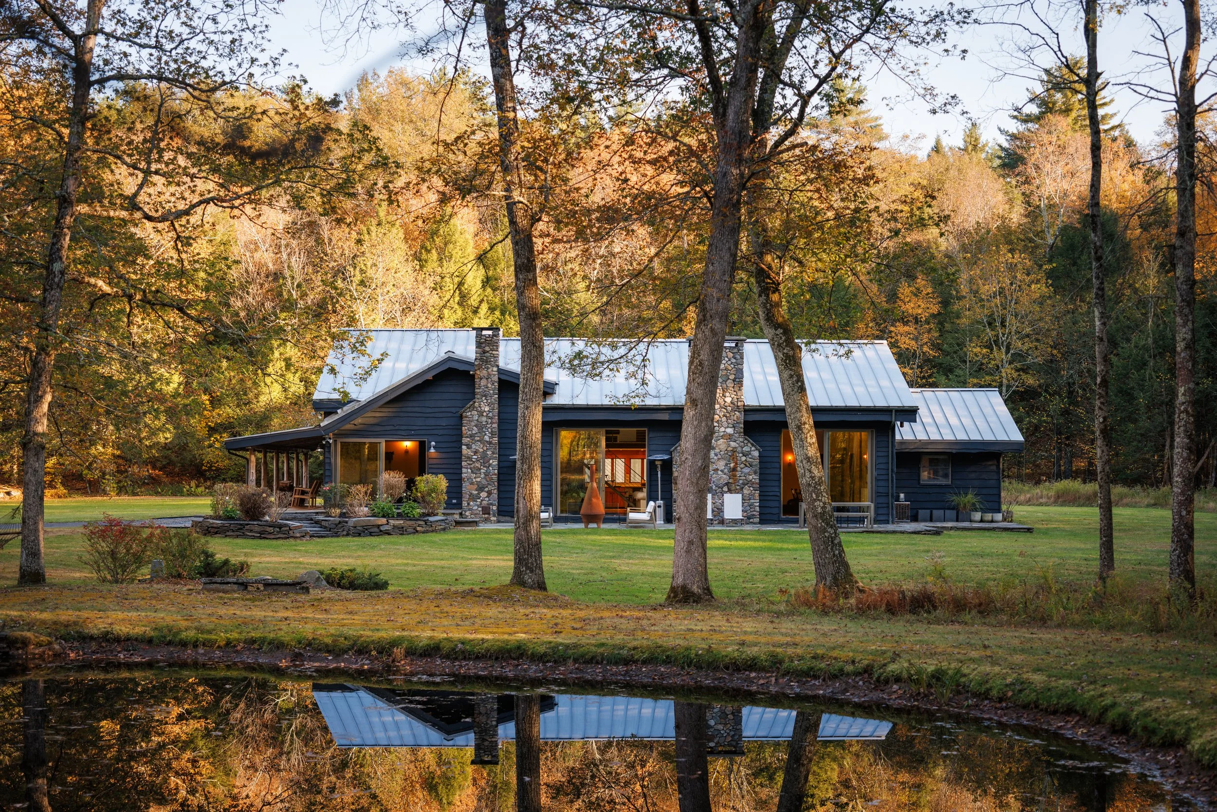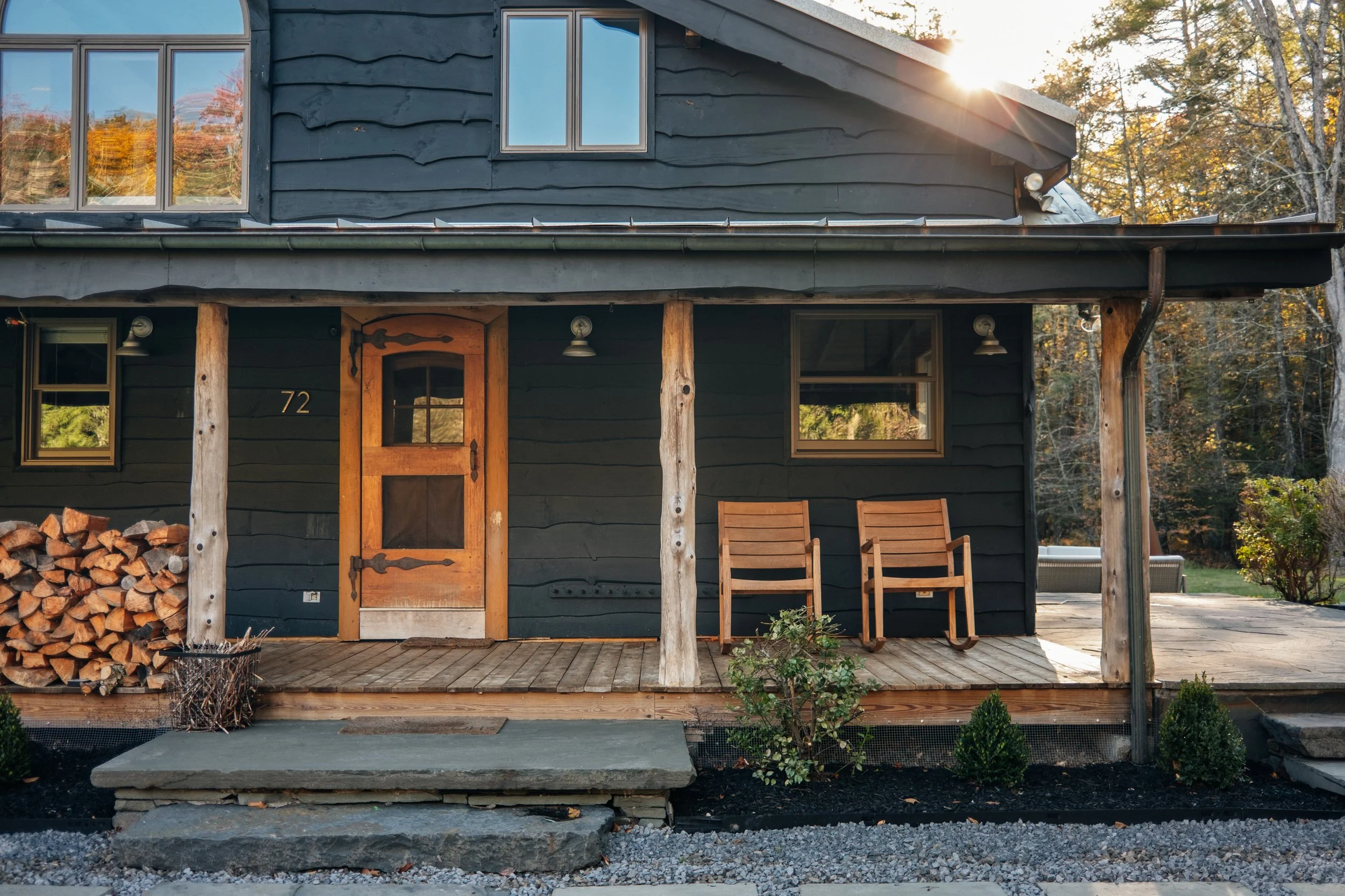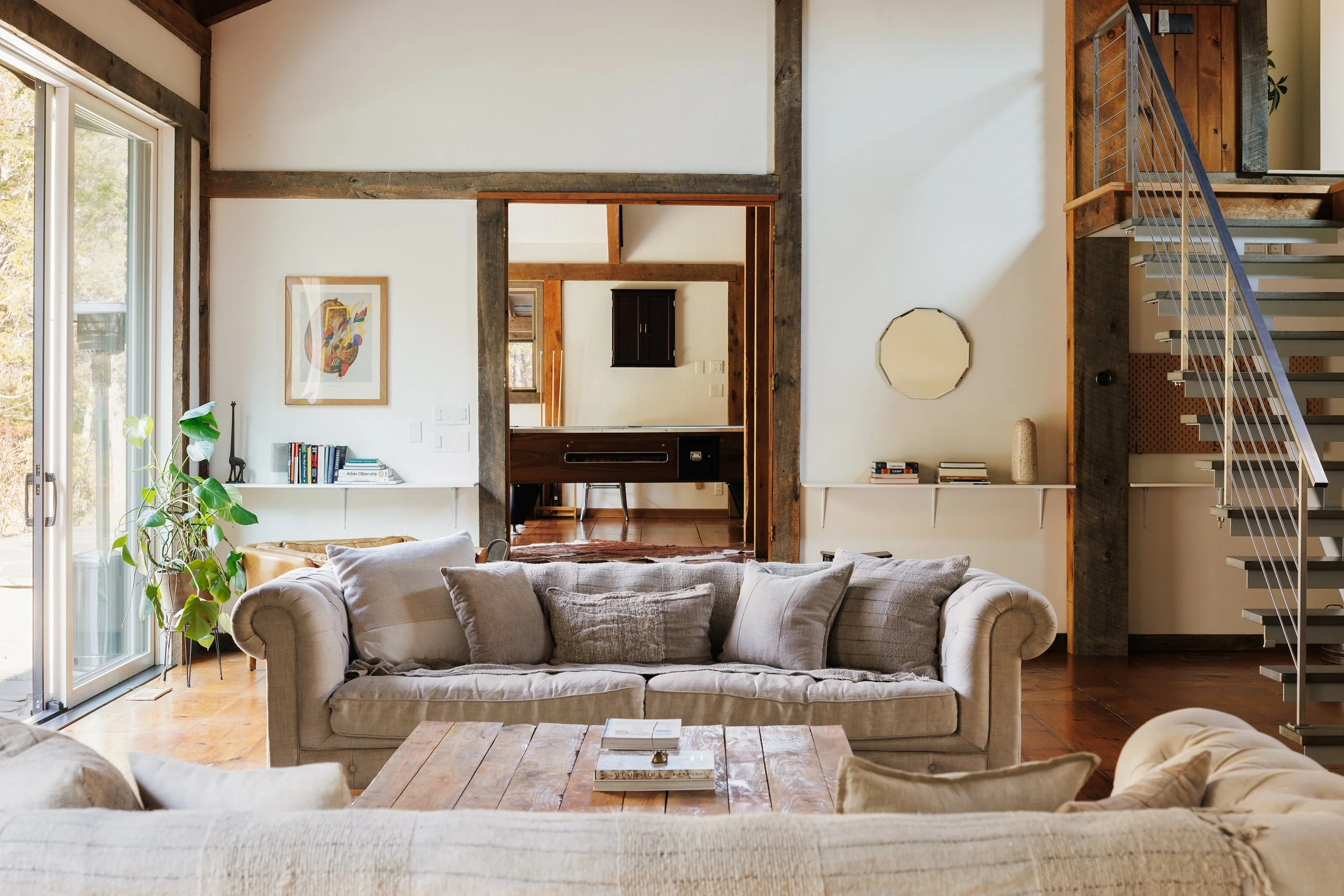 Nestled amongst the trees is a newly renovated guest house. Known as the “Sugar Shack”, it was once a barn where maple syrup was made. The structure has so much character having preserved much of the barn’s interior woodwork and shape while at the same time being essentially a new build. Complete with a new slab, new roof, radiant heat concrete floors, 30’ cathedral ceilings, a wood-burning stove, split units, new glass sliding doors, and an open modern kitchen with large windows framing spectacular views of Overlook Mountain. The Sugar Shack is nicely situated at a distance from the main house, so it’s perfect for rental income and has been successfully run as such.