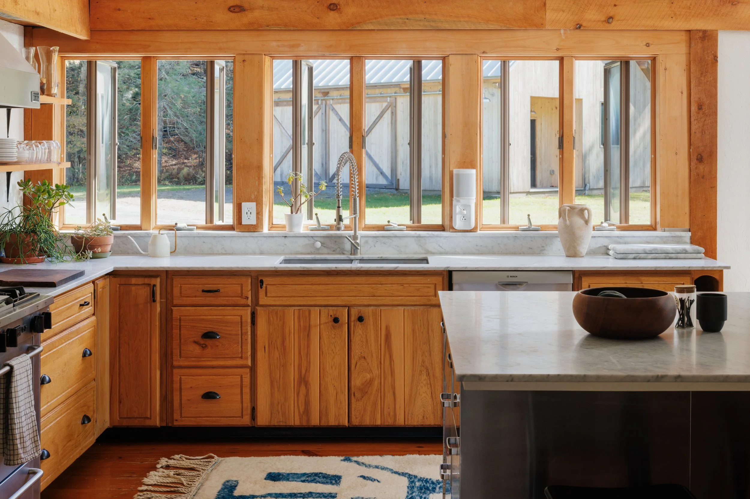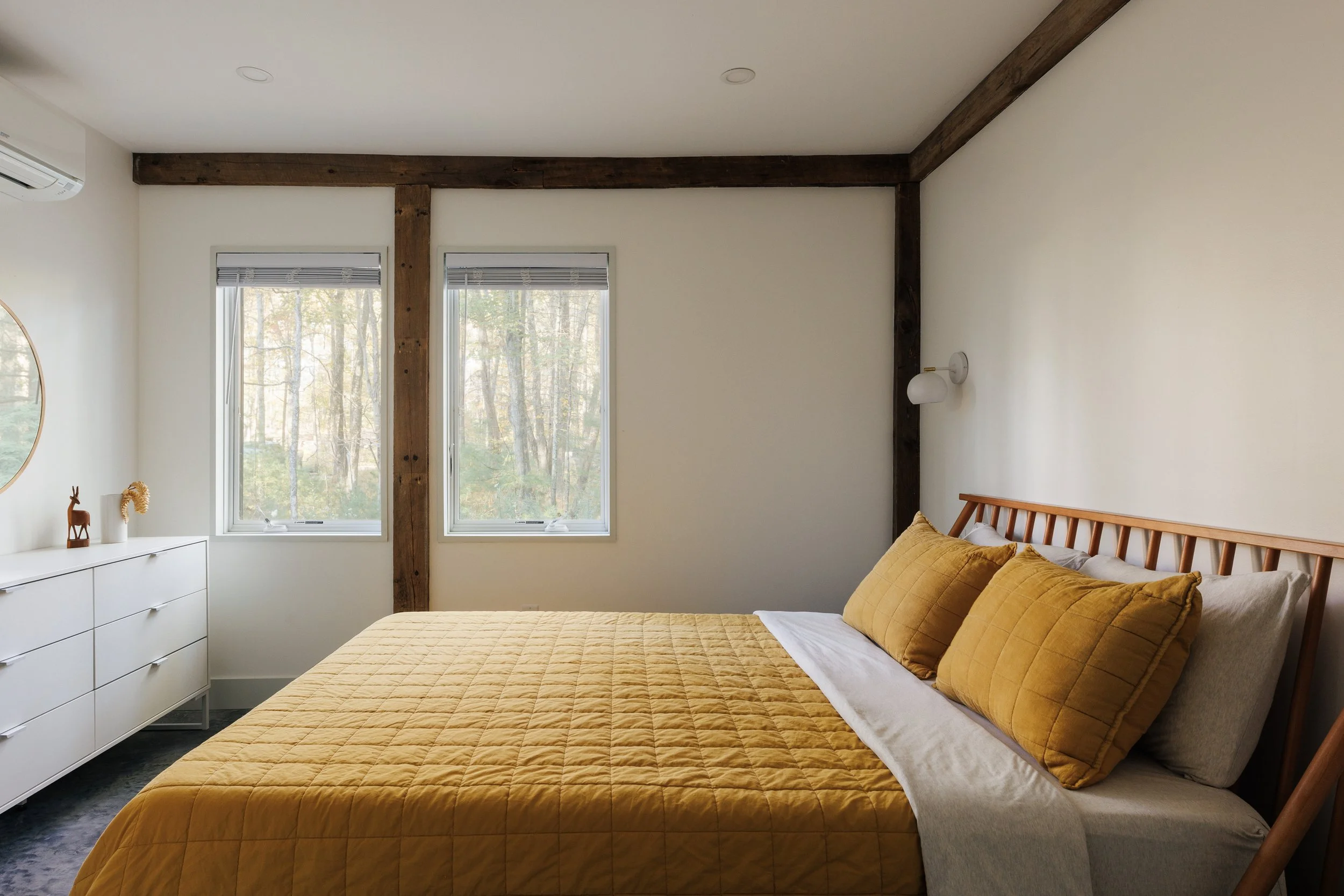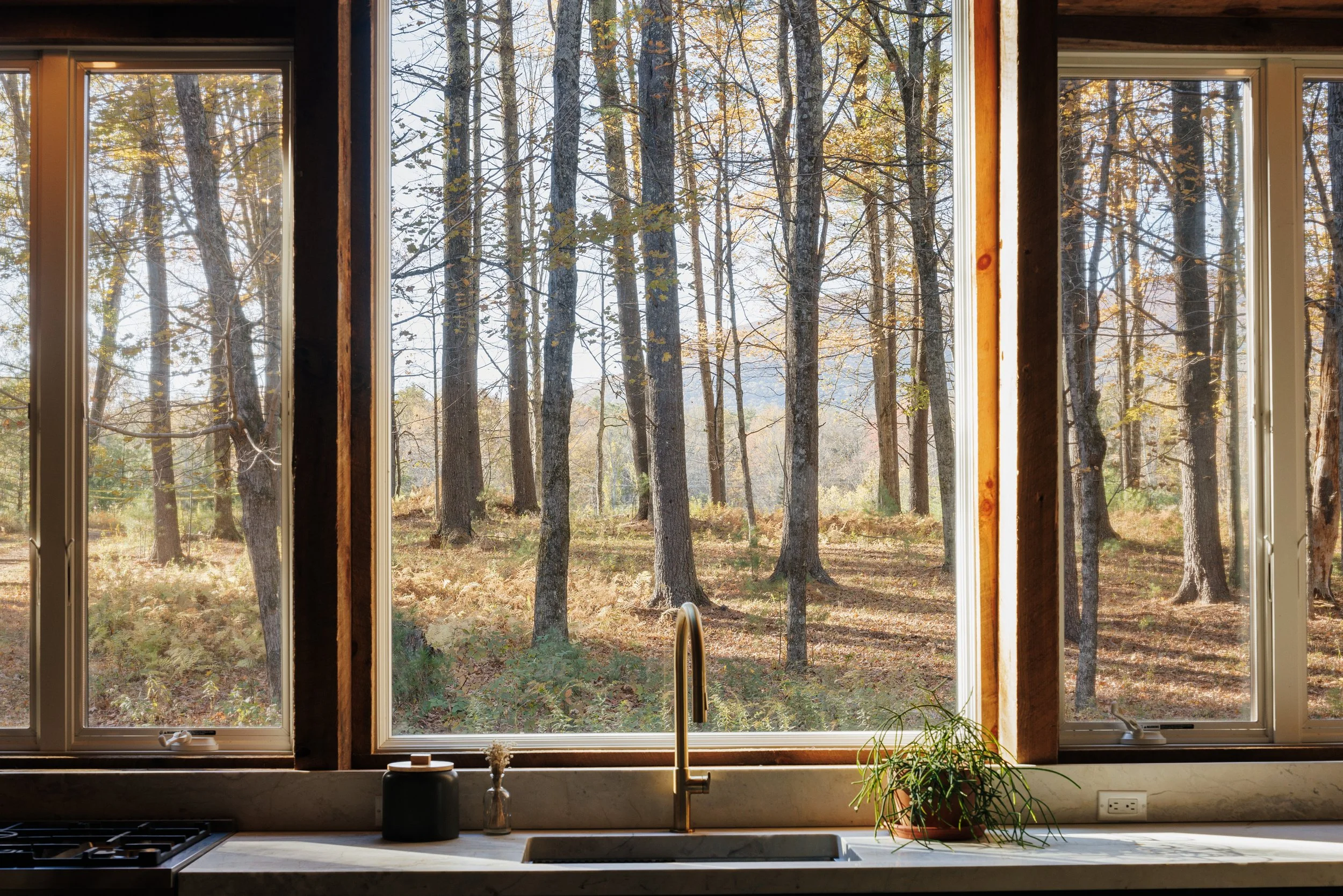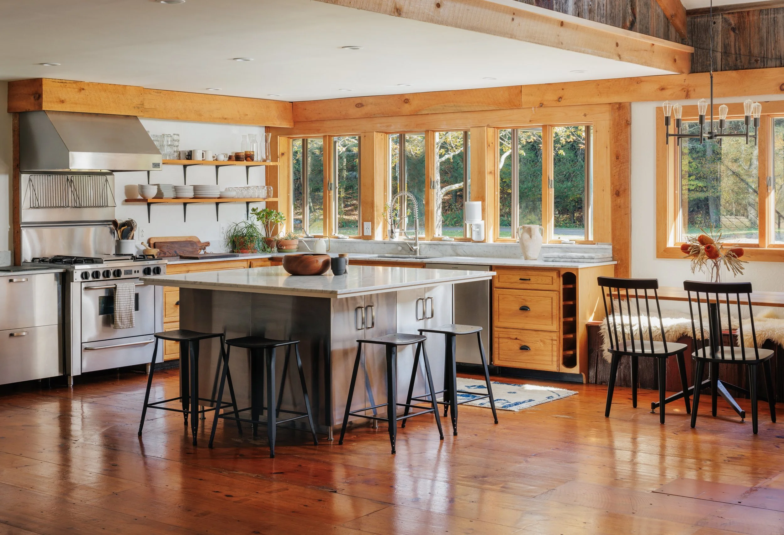 Nestled amongst the trees is a newly renovated guest house. Known as the “Sugar Shack”, it was once a barn where maple syrup was made. The structure has so much character having preserved much of the barn’s interior woodwork and shape while at the same time being essentially a new build. Complete with a new slab, new roof, radiant heat concrete floors, 30’ cathedral ceilings, a wood-burning stove, split units, new glass sliding doors, and an open modern kitchen with large windows framing spectacular views of Overlook Mountain. The Sugar Shack is nicely situated at a distance from the main house, so it’s perfect for rental income and has been successfully run as such.