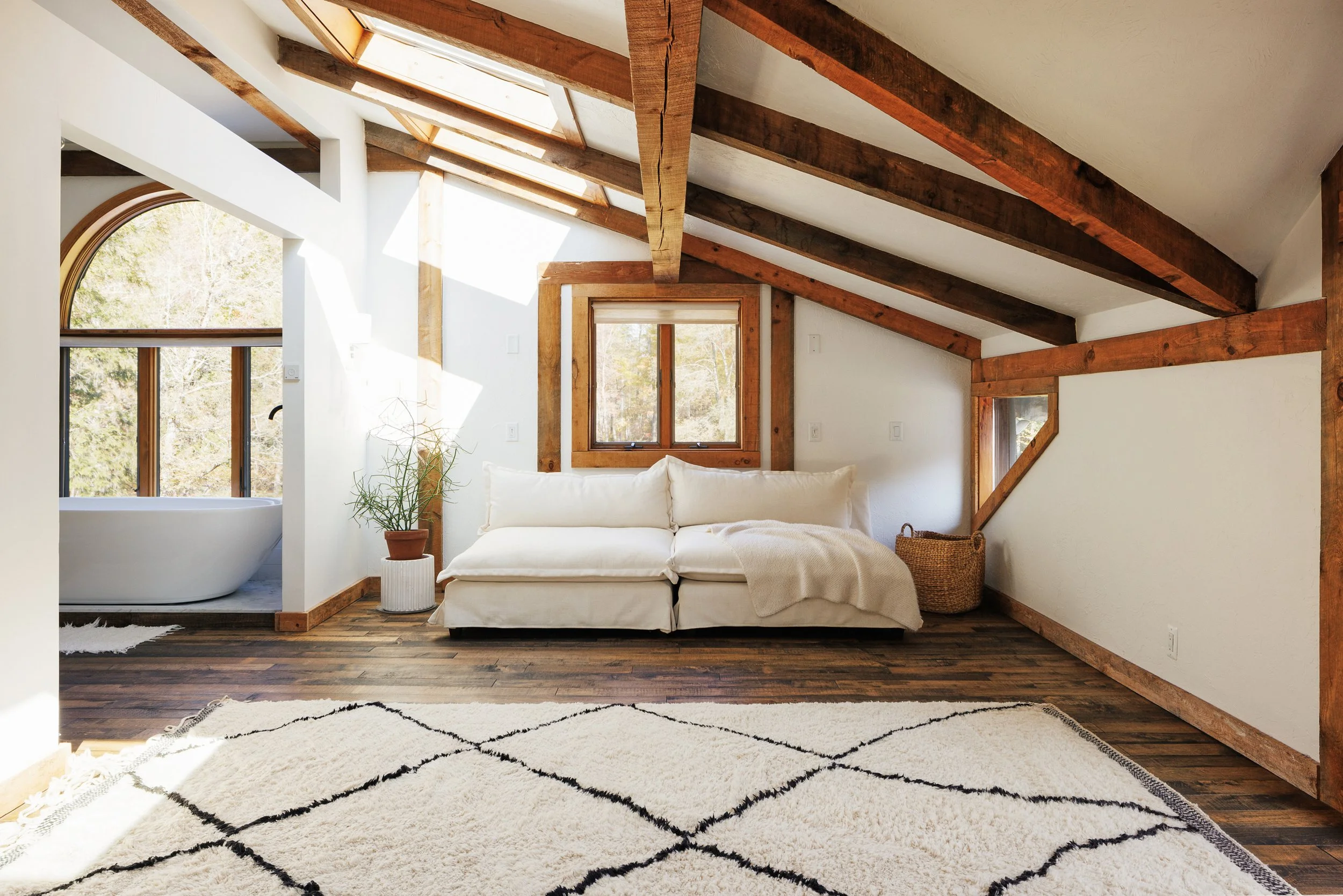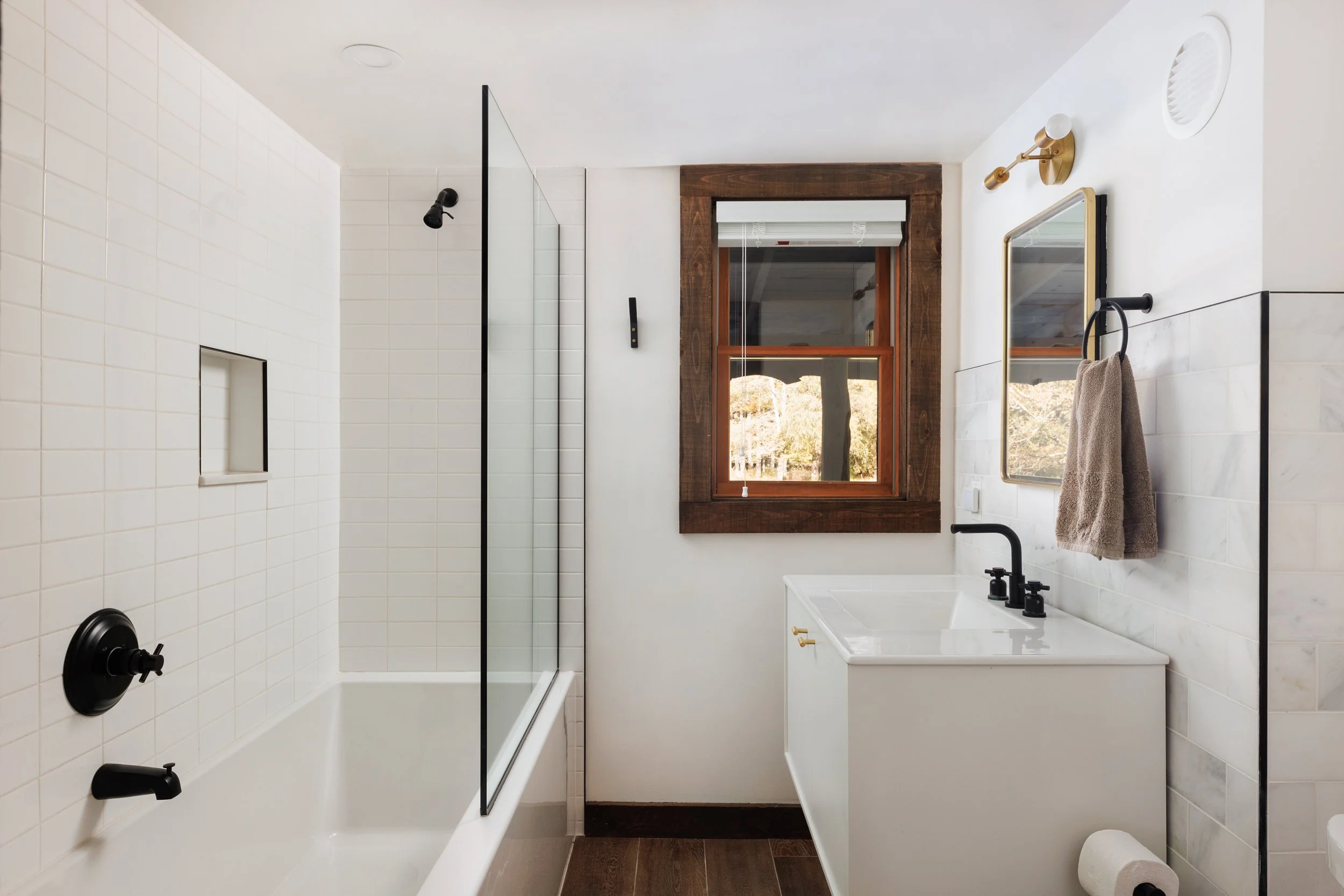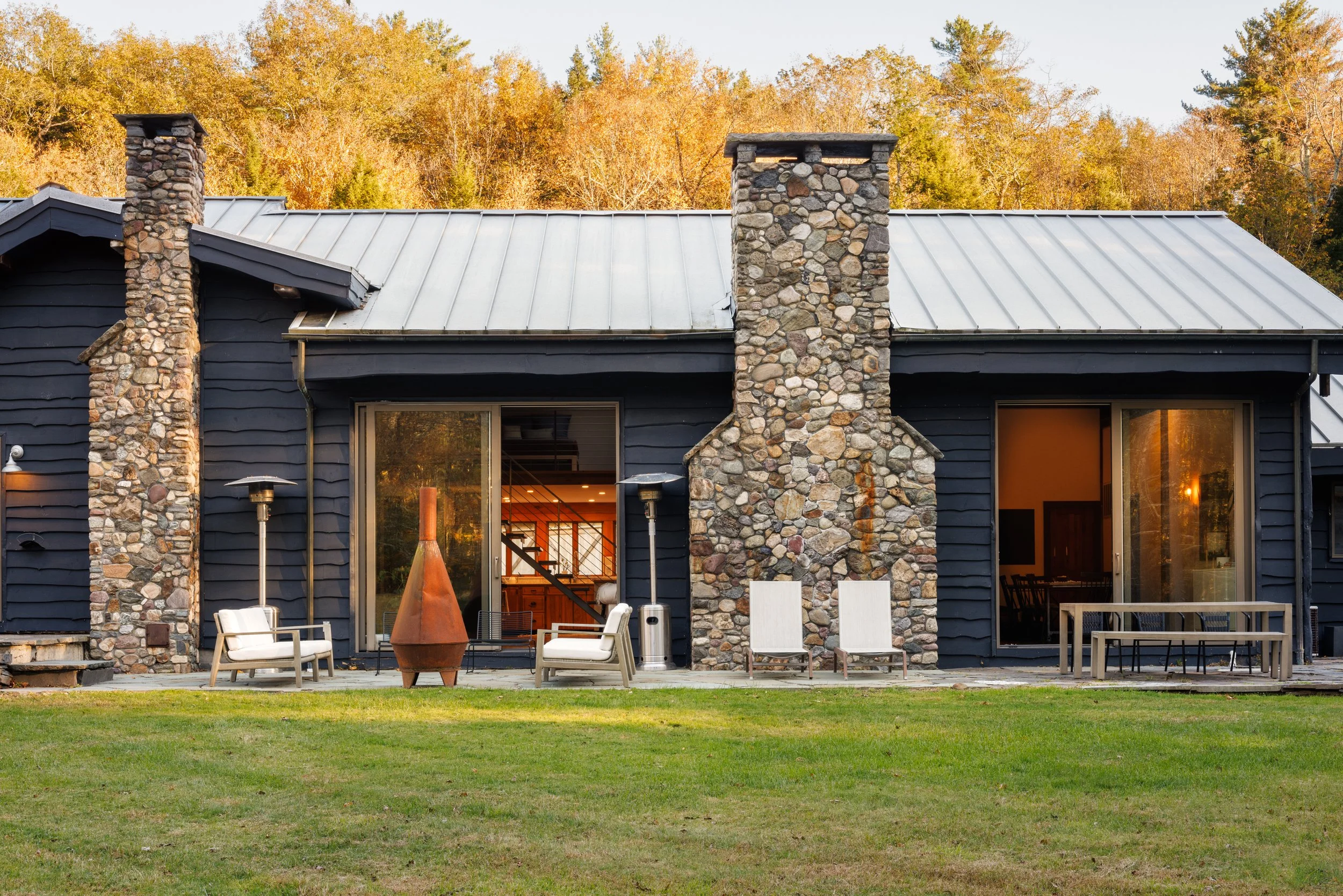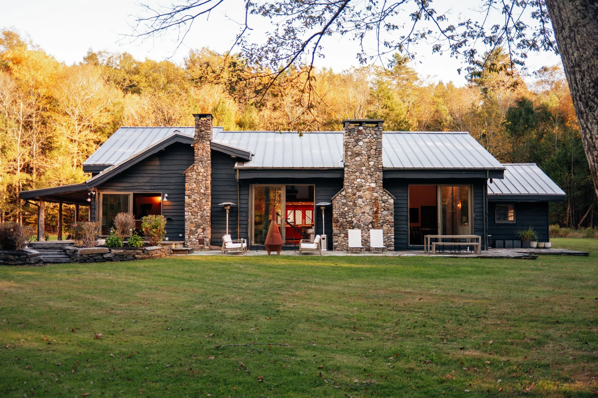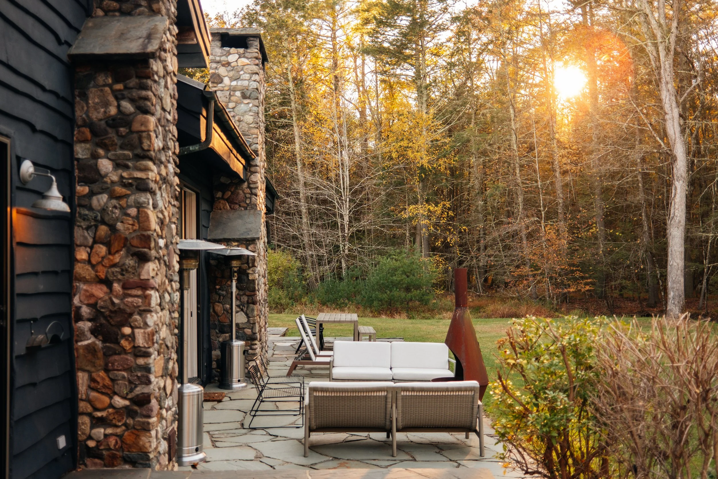 Nestled amongst the trees is a newly renovated guest house. Known as the “Sugar Shack”, it was once a barn where maple syrup was made. The structure has so much character having preserved much of the barn’s interior woodwork and shape while at the same time being essentially a new build. Complete with a new slab, new roof, radiant heat concrete floors, 30’ cathedral ceilings, a wood-burning stove, split units, new glass sliding doors, and an open modern kitchen with large windows framing spectacular views of Overlook Mountain. The Sugar Shack is nicely situated at a distance from the main house, so it’s perfect for rental income and has been successfully run as such.