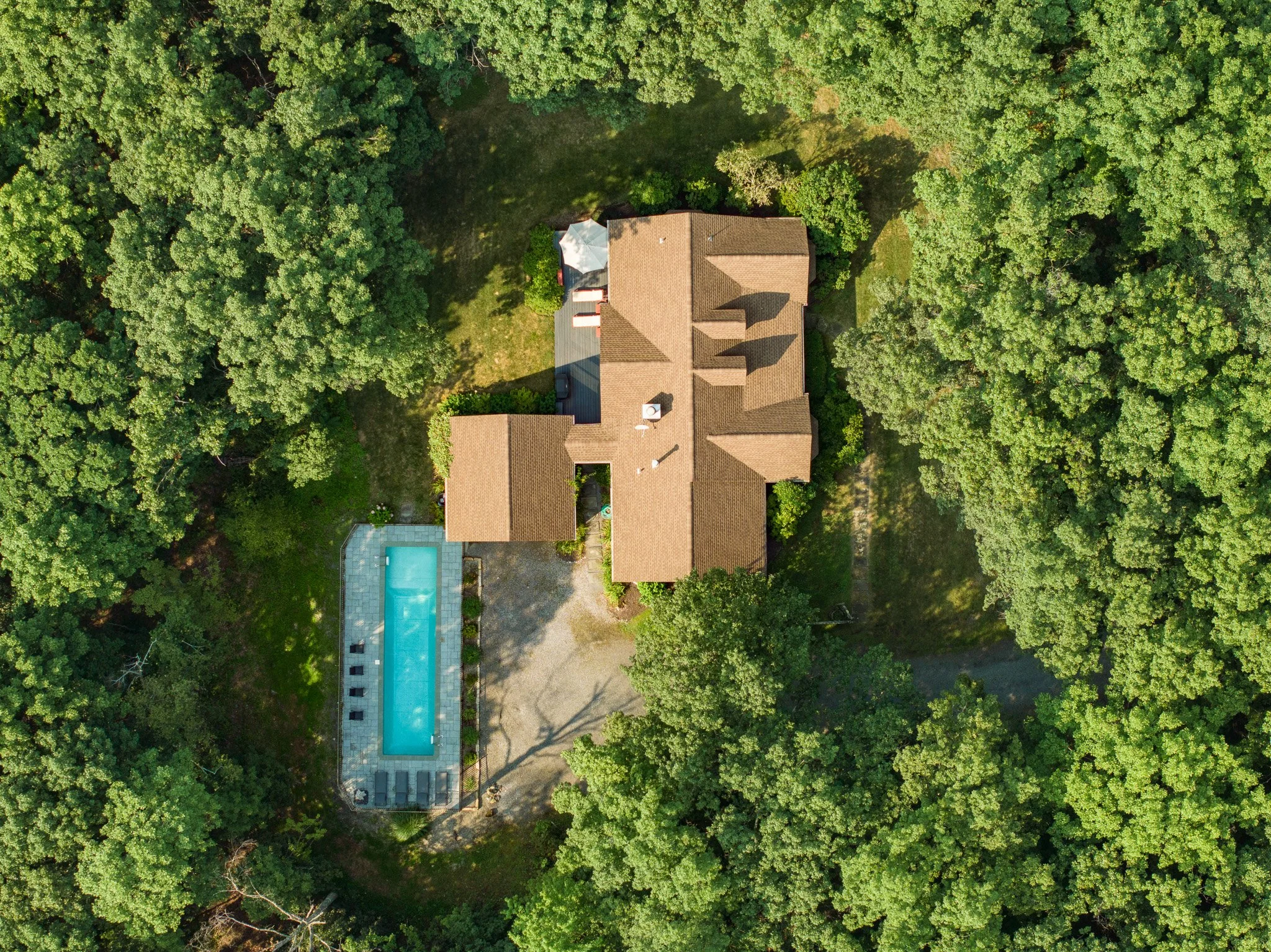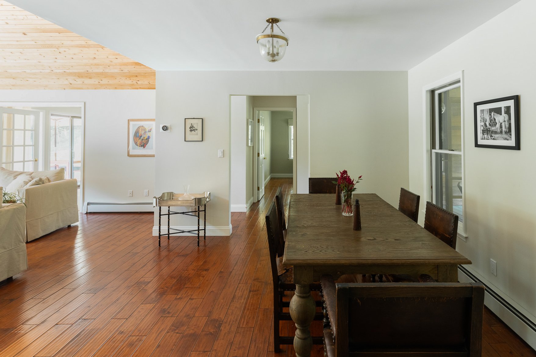 Nestled at the end of a long, private drive, this single-level retreat set on 5 wooded acres offers comfortable living surrounded by a beautiful natural setting. Located just 15 minutes from Rhinebeck Village, this renovated cedar-sided home features lovely outdoor areas including a screened-in porch, large deck and a heated lap pool.