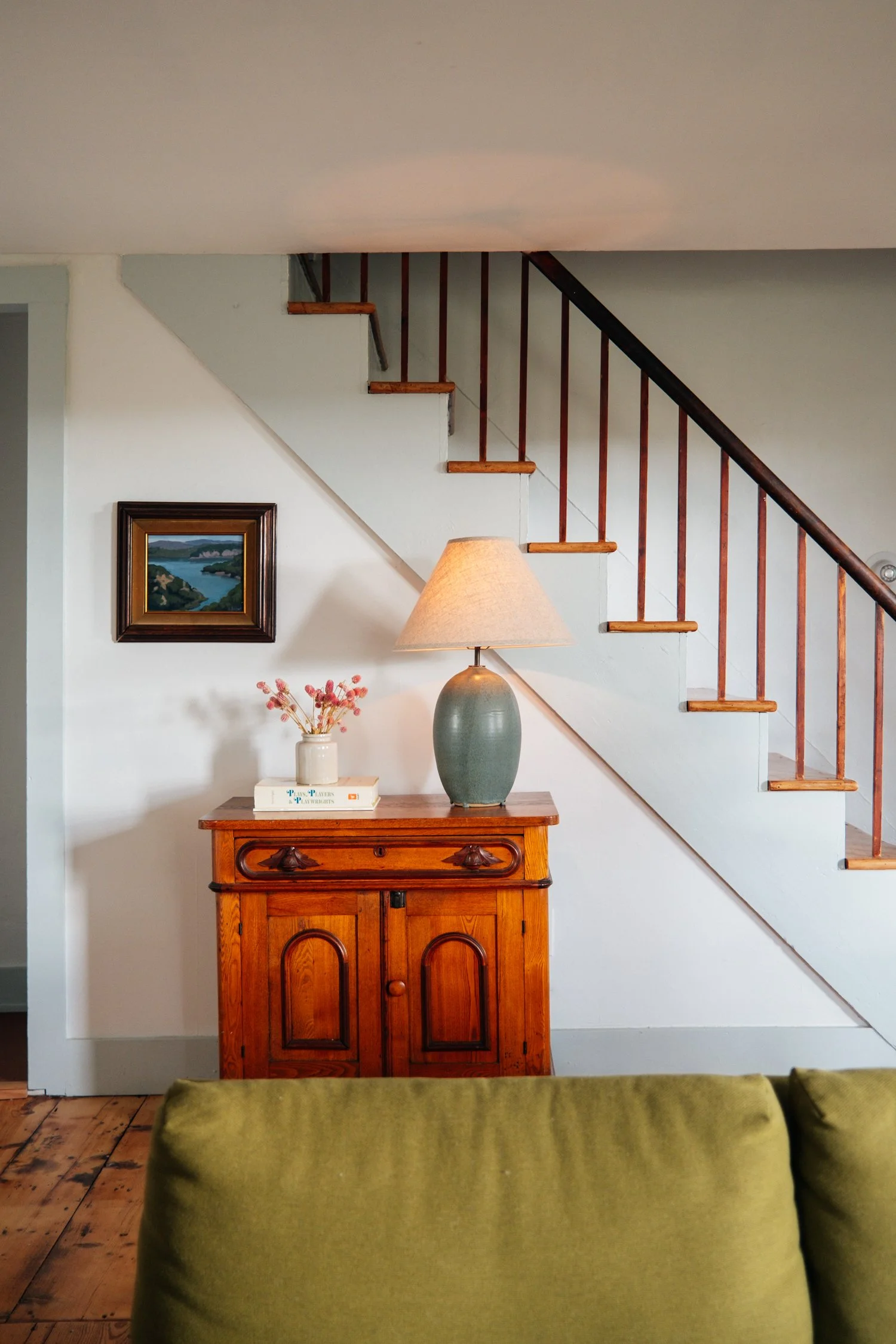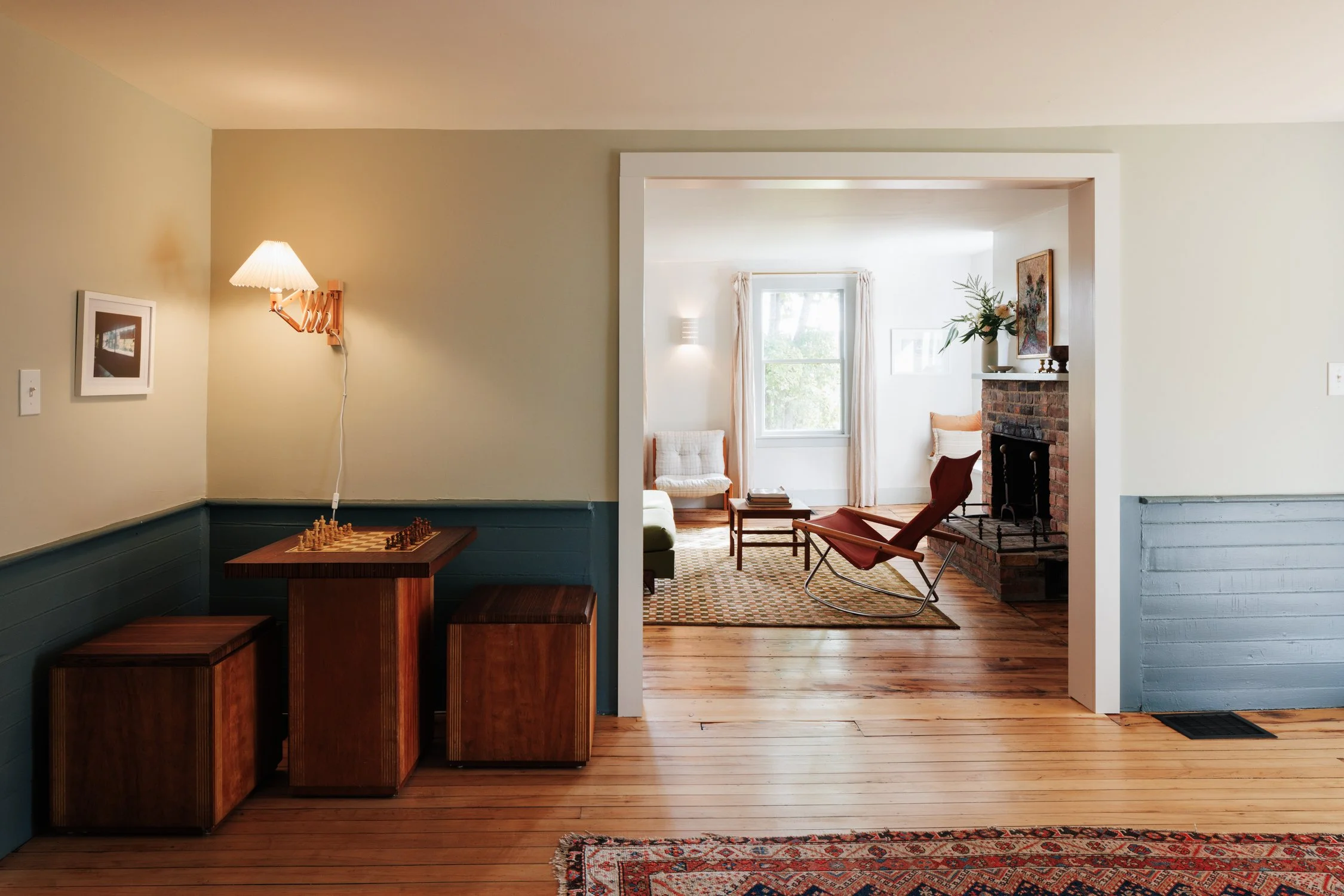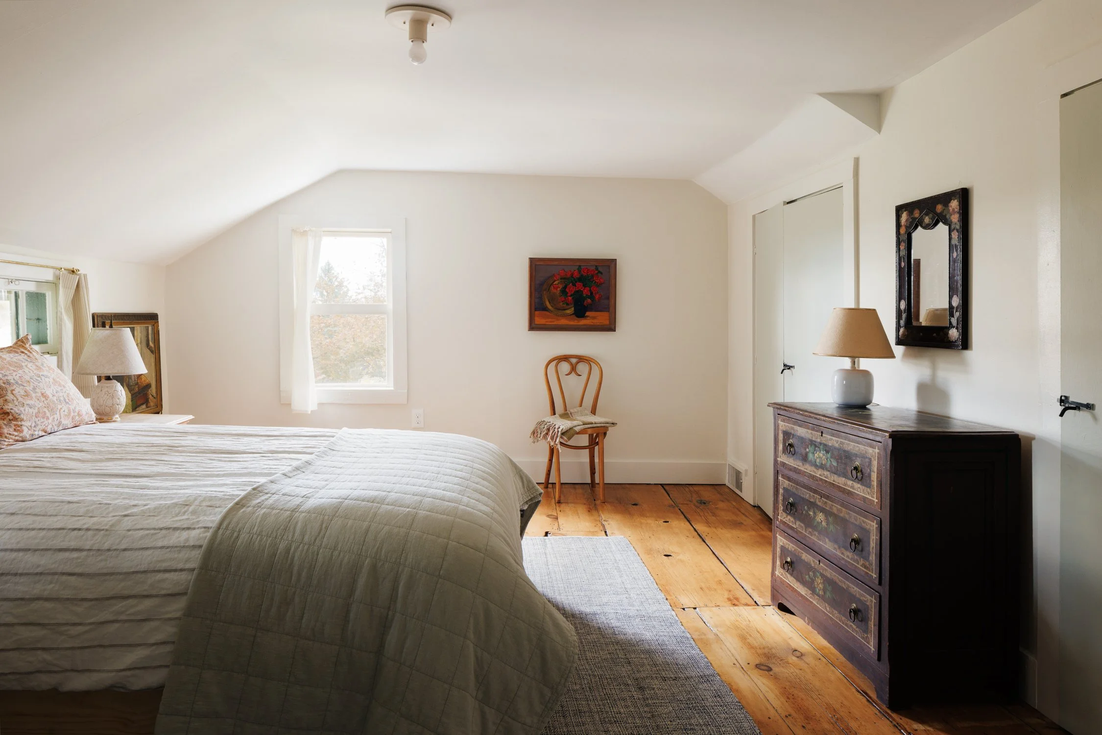 The second floor reveals three more inviting bedrooms: catering perfectly to families or those who love to host. The upstairs bathroom is a serene oasis, showcasing stylish cement tiles from Zia, an airy shower, and a claw-foot bathtub with scenic views that turn every bath into a tranquil escape.
