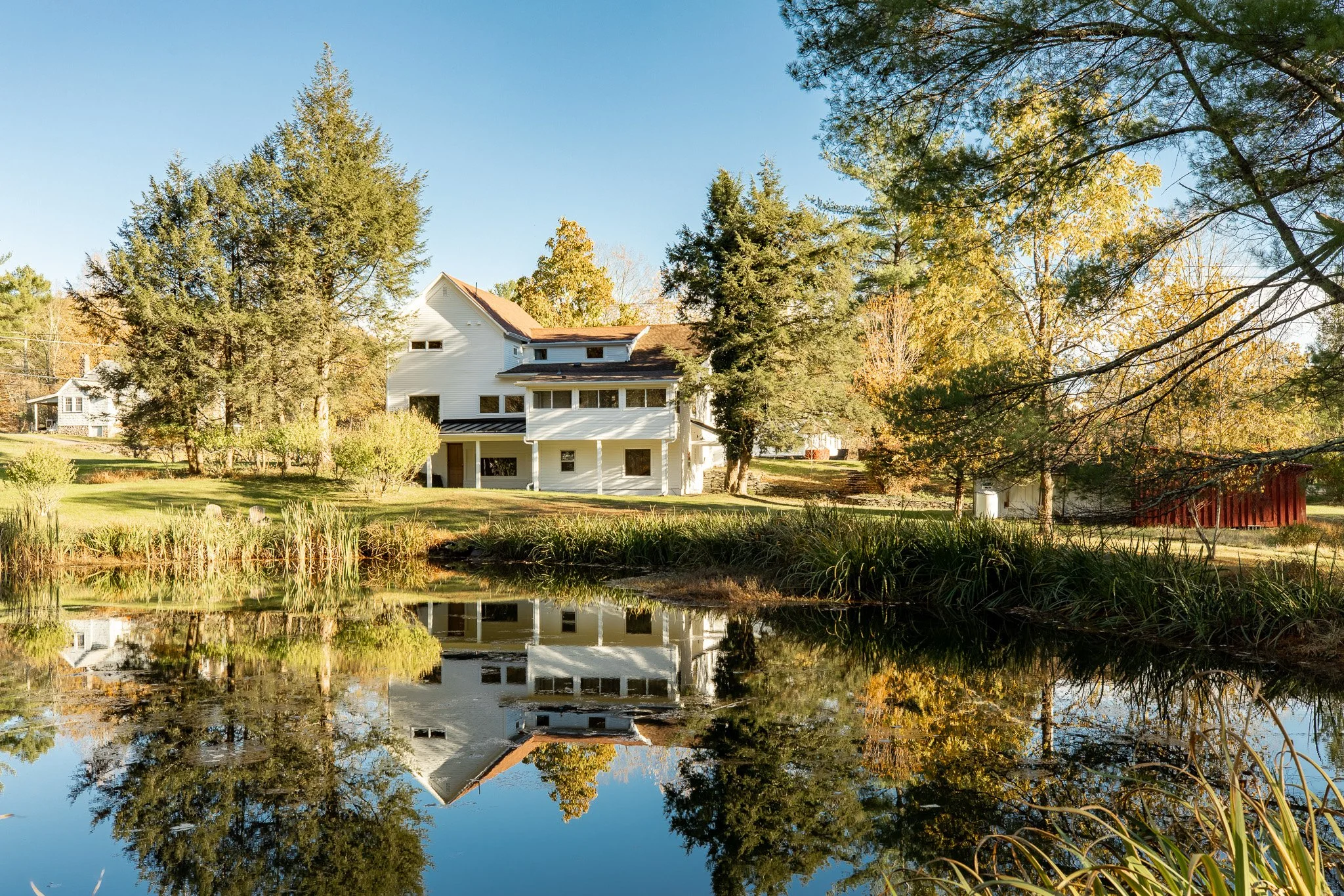 Perfect for entertaining, each room flows gracefully into the next. Cozy up in front of the fireplace on a chilly night or cook for family and friend’s in the spacious kitchen, which features soapstone countertops, all new Bertazzoni stainless steel appliances, including a wine fridge, and custom cabinetry. A first floor bedroom with its own bathroom and private 3-season porch also offers views of the mountain ridge in the distance and spring-fed pond that flows into a nearby waterfall. Fall asleep to the sounds of rushing water!